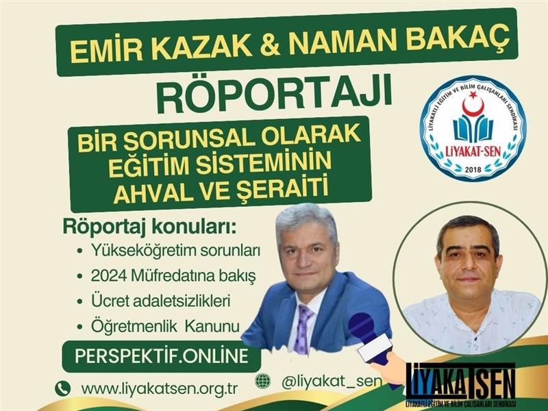Genel başkanımız Emir KAZAK Gazeteci Naman BAKAÇ ile bir dizi röportaj gerçekleştirdi. "PERSPEKTİF" de eğitimin ahval ve şeraitini, öğretmen ve öğrenci sorunlarını, öğretmenlik meslek kanunu, 3600 ek gösterge sorununu, Hiyerarşik ücret adaletsizliğini, Üniversitelerimizin yapısal sorunlarını, İdari personellerinin tayin sorununu vb. pek çok konuyu Liyakat-Sen olarak kendi persfektifimizden değerlendirdi.