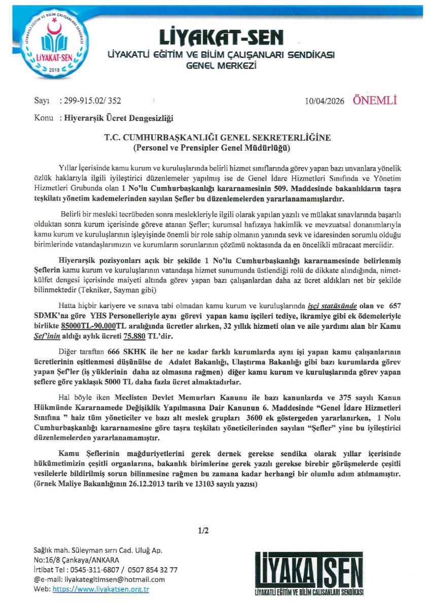 Hiyerarşik Ücret Dengesizliklerini Cumhurbaşkanlığına Bildirdik
