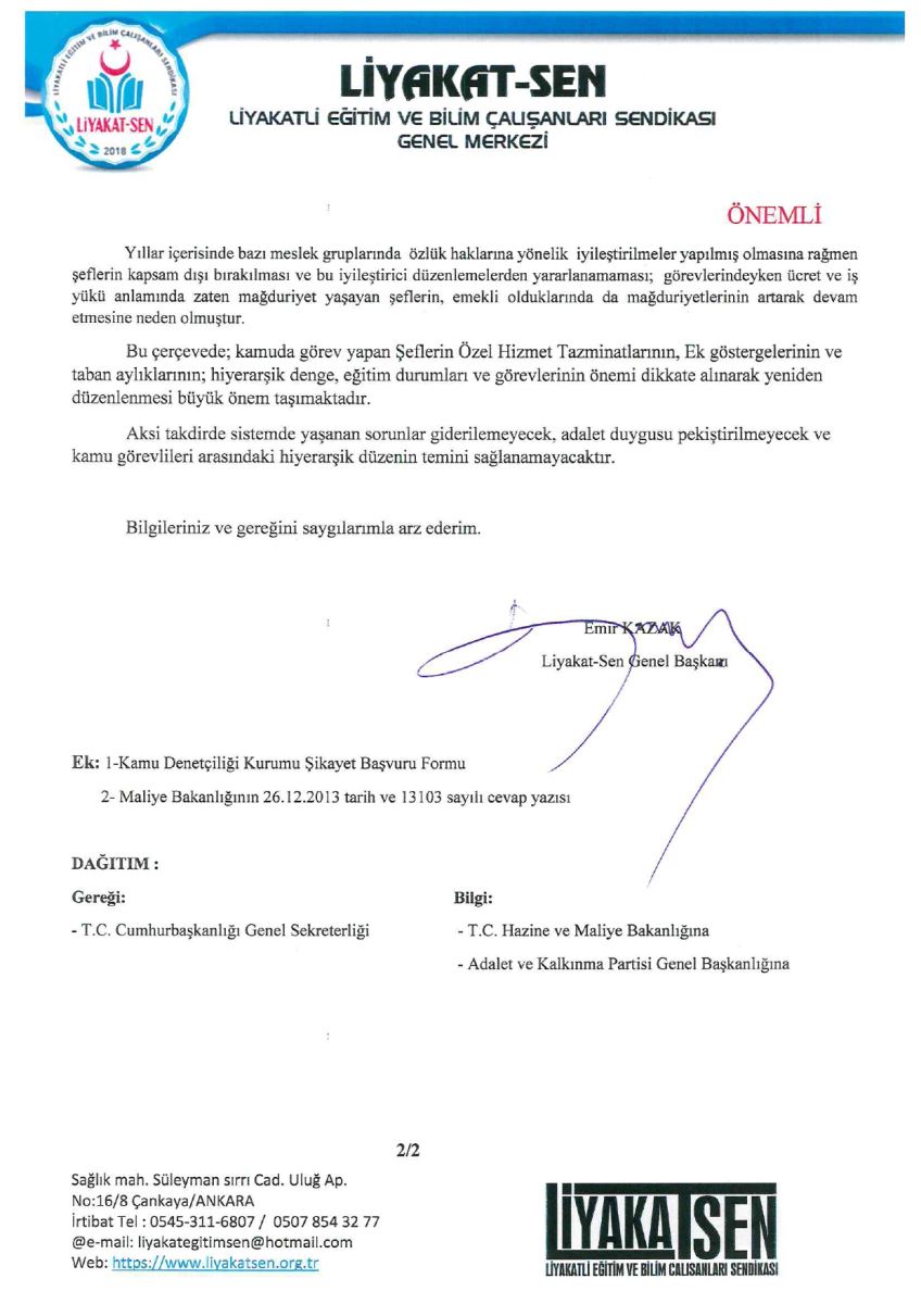 Kamu Şeflerinin mağduriyetlerini gerek dernek gerekse sendika olarak yıllar içerisinde hükümetimizin çeşitli organlarına, bakanlık birimlerine gerek yazılı gerekse birebir görüşmelerde çeşitli vesilelerle bildirilmiş sorun bilinmesine rağmen bu zamana kadar herhangi bir olumlu adım atılmamıştır. (örnek Maliye Bakanlığının 26.12.2013 tarih ve 13103 sayılı yazısı)