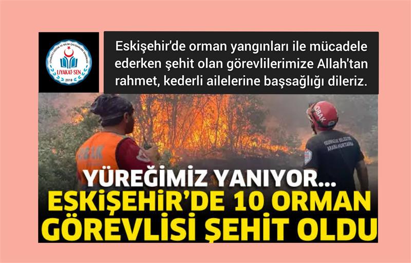 Eskişehir'de orman yangınları ile mücadele ederken şehit olan görevlilerimize Allah'tan rahmet, kederli ailelerine başsağlığı dileriz.