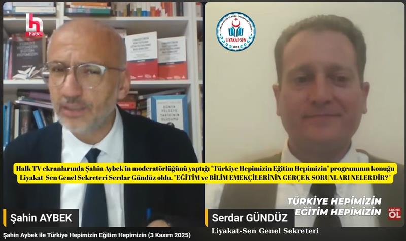Halk TV ekranlarında Şahin Aybek'in moderatörlüğünü yaptığı "Türkiye Hepimizin Eğitim Hepimizin" programının konuğu Liyakat-Sen Genel Sekreteri Serdar Gündüz oldu. "EĞİTİM ve BİLİM EMEKÇİLERİNİN GERÇEK SORUNLARI NELERDİR?" konulu röportaj gerçekleştirdi.