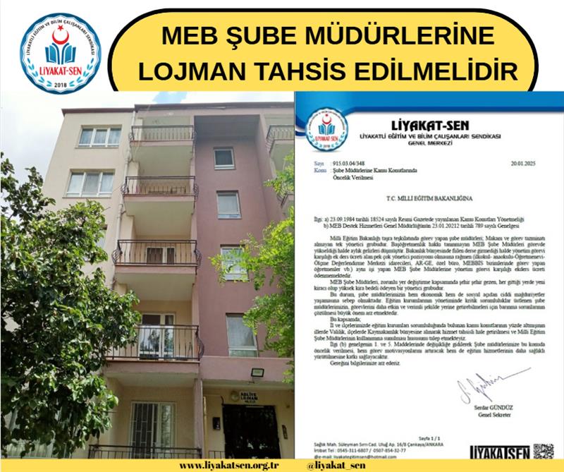 MEB ŞUBE MÜDÜRLERİNE LOJMAN TAHSİS EDİLMELİDİR