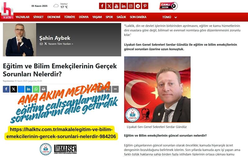 Ana Akım medyanın önde gelen temsilcisi Halktv.com.tr'nin eğitimci yazarı Şahin AYBEK'in konuğu olan Genel Sekretirimiz Serdar GÜNDÜZ'ün roportaj metni köşe yazısı formatında yayınlanmıştır.