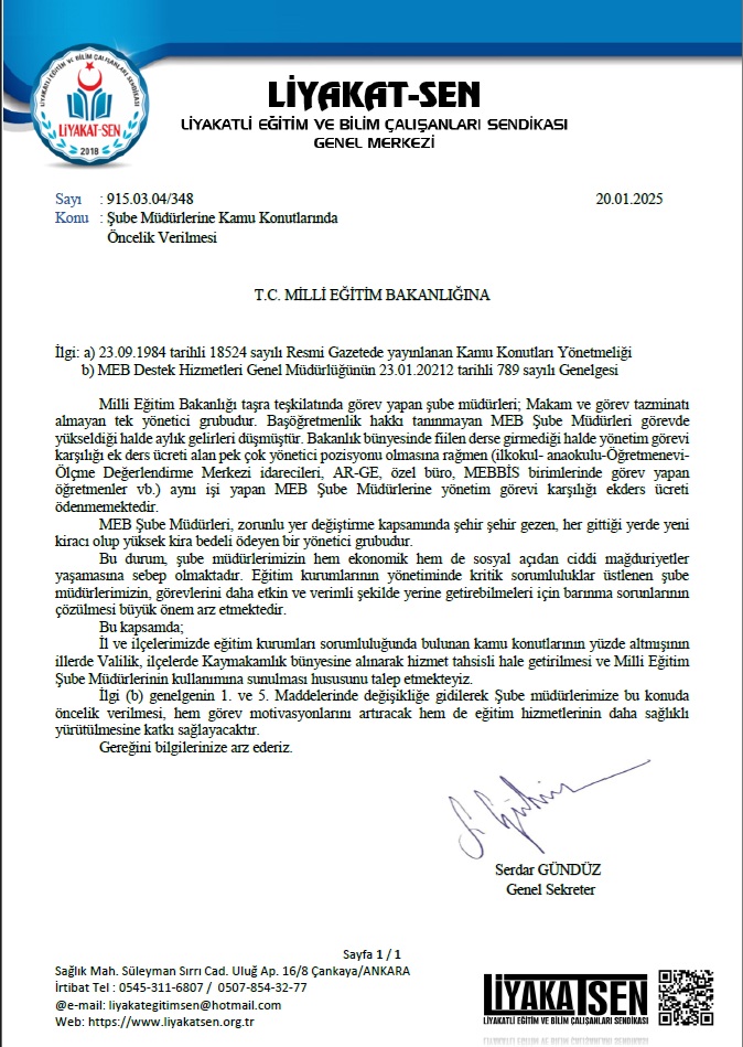 Bu durum, şube müdürlerimizin hem ekonomik hem de sosyal açıdan ciddi mağduriyetler yaşamasına sebep olmaktadır. Eğitim kurumlarının yönetiminde kritik sorumluluklar üstlenen şube müdürlerimizin, görevlerini daha etkin ve verimli şekilde yerine getirebilmeleri için barınma sorunlarının çözülmesi büyük önem arz etmektedir.